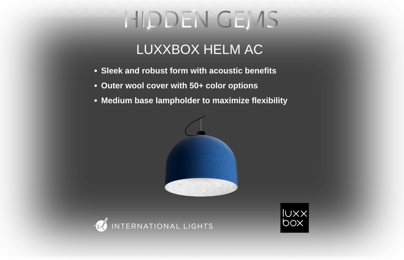 Helm AC combines a sleek, rounded form with the benefit of acoustic rated materials. The underlying robustness is offset by a soft wool-covered, thermo-formed felt shell. With a form that echoes the design of a Roman Legion’s helmet and the robustness to match, the Helm AC pendant makes a bold statement that will enliven any space.
