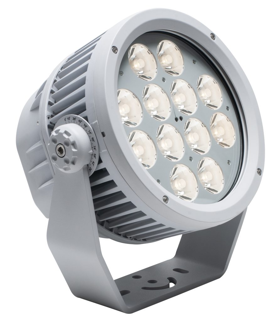 Dyna Drum SO White is a high output, outdoor rated, white LED floodlight. It features an internal 100-277VAC power supply, onboard DMX+RDM driver, and each unit carries Acclaim’s Aria wireless DMX technology inside. It comes with a narrow 5o beam standard, with optional quick-change spread lenses for wider applications. It is ideal for facade lighting applications and as an area floodlight.