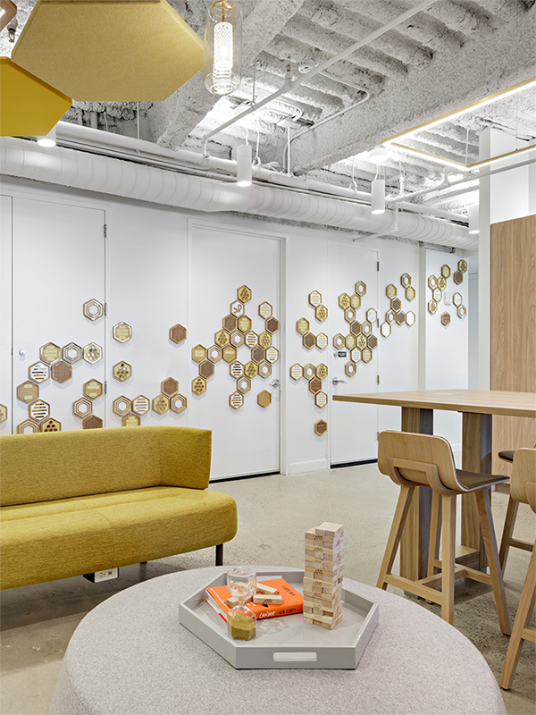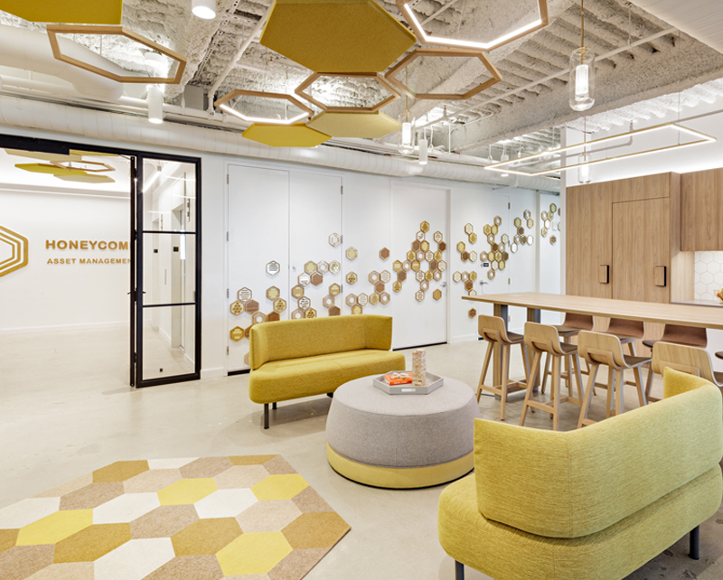 Rooted in their name and their cultural identity is the idea that the ‘honeycomb’ is nature’s best example of a scalable repeatable investment driven by a common goal. Located in 645 Madison Avenue New York, the company wanted this idea to resonate throughout their new workspace.